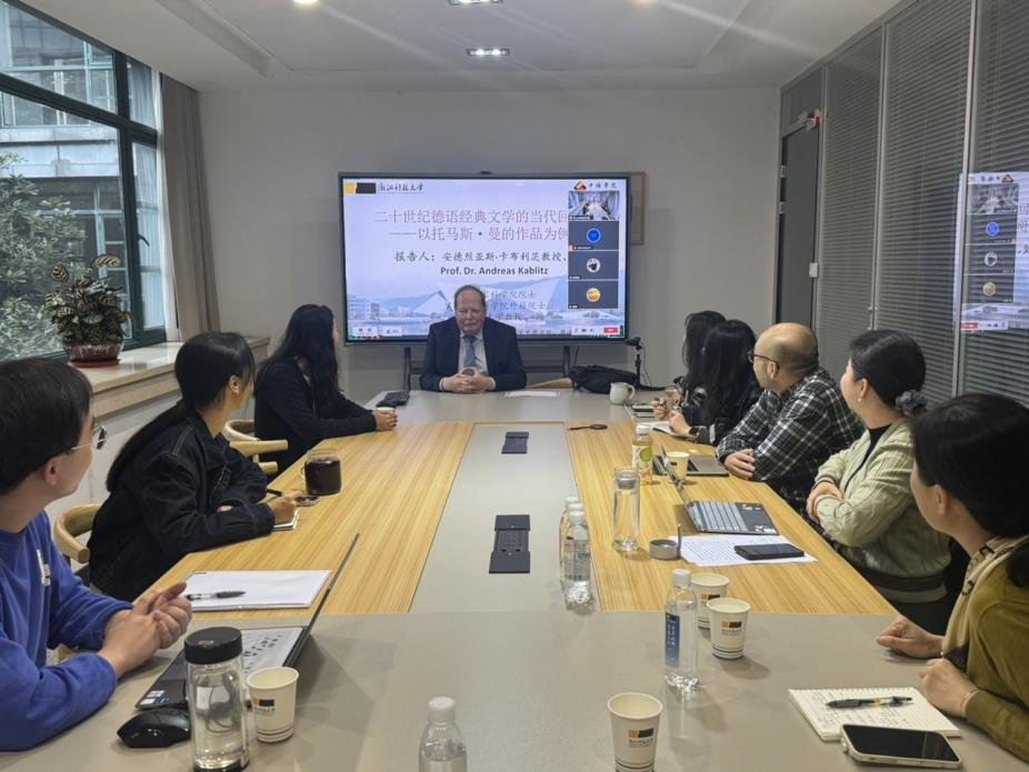 2025年10月21日,德国国家科四虎 院士、罗马国家科四虎 外籍院士、科隆大学教授安德烈亚斯·卡布利茨教授做客中德荟讲坛。本次学术报告题为“二十世纪德语经典文学的当代回响——以托马斯·曼的作品为例”,由四虎 学术副院长陈巧主持,四虎 师生、德语国家研究中心等二十余人聆听了本场报告。讲座重点聚焦1929年诺贝尔文学奖得主托马斯·曼(Thomas Mann, 1875-1955)生前最后一部小说《大骗子克鲁尔的自白》(Bekenntnisse de...