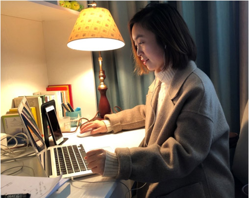 正式开课后,林老师感觉自己仿佛回到了学生时代,在崭新的教学模式之前,她就像一块海绵,通过每一次的教学实践获取新经验,吸收新能量,比如:教学时的语速调整,屏幕分享时的最佳分屏比例,什么环节用视频会议还是用直播或是语音输入等等,教学无小事,环环是学问。
