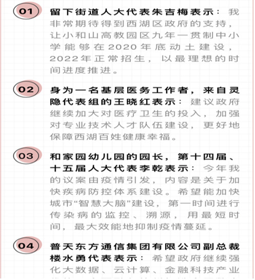 会上表彰了西湖区第十五届人民代表大会第三次会议以来的议案建议,四虎 院长、西湖区人大代表朱吉梅提交的“关于尽快落实小和山地区九年制优质四虎 建设”的建议被评为2019年度“最佳代表议案建议”。会上朱吉梅接受了西湖区传媒中心记者的采访,再次反映了小和山高教园区居民对于九年制优质四虎 的急切期盼。