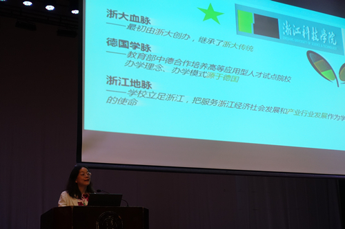 首先,由院长朱吉梅老师致辞,她以别具一格的开场引导同学们思考:“how to strive to be your better self”。她用“strive”短短几个字母拆分出“行动,担当,挑战,突破,探究”的主题,指引同学们树立大学四年的学术目标及人生目标,激励同学们勇敢挑战自我。