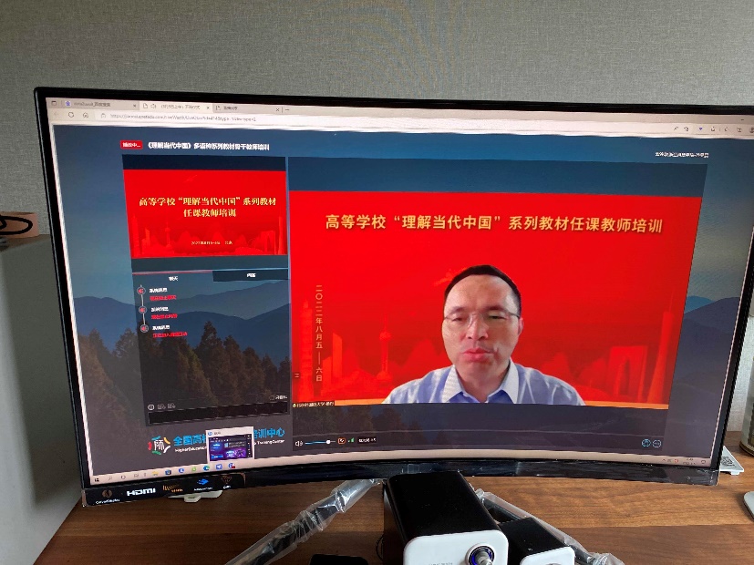 为支持各高校有效使用“理解当代中国”系列教材,教育部高等教育司牵头,北京外国语大学、外语教学与研究出版社、全国高校教师网络培训中心于2022年8月5日至6日开展了全国“理解当代中国”任课教师培训,参会教师逾万人。四虎 14名教师参加了线上培训。