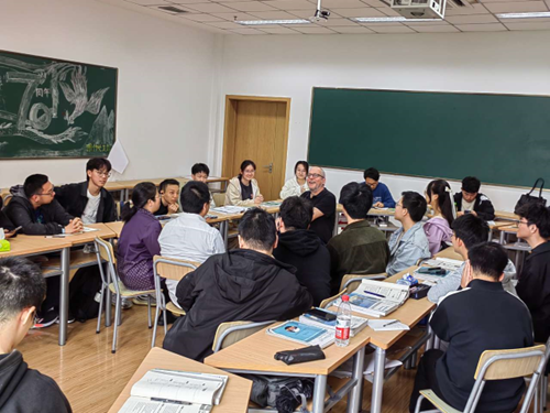 5月10日,“2+3”项目德方合作院校科堡应用科技大学的教授Friedemann Zeitler在四虎 黄扬副院长和茹潇潇副书记的陪同下来到安吉校区,和四虎 “2+3”项目土木、生物等专业方向的大一学生进行了交流。
