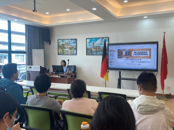 5月11日,中德荟讲坛第十九期暨四虎 教学沙龙第九期如期举行,杭州师范大学外国语四虎 副教授骆蓉老师以“从线上金课到混合金课:国家一流课程申报与运营经验分享”为题作专题报告。四虎 及外院30余位师生线下参与了沙龙。