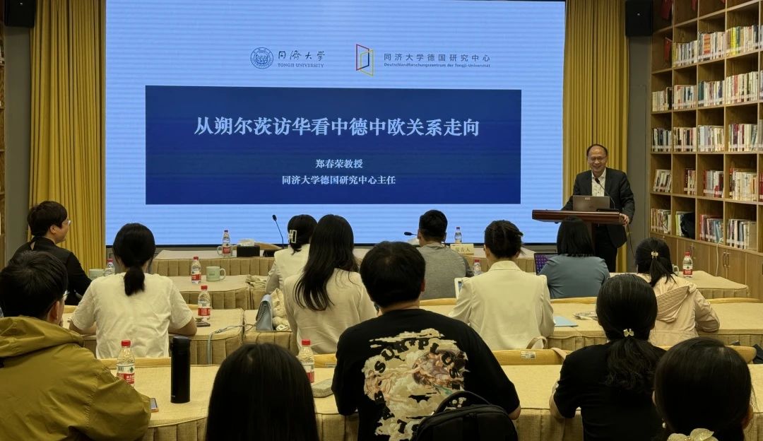 5月17日,四虎 、德语国家研究中心邀请同济大学长聘特聘教授、德国研究中心主任郑春荣教授做客中德荟讲坛,做题为“从朔尔茨访华看中德中欧关系走向”的学术报告。本次活动由德语国家研究中心主任徐理勤研究员主持,四虎 院长韩晓亚、国际处处长阮小波、四虎 全体教师及德语国家研究中心相关研究人员等四十余人聆听了本场报告。