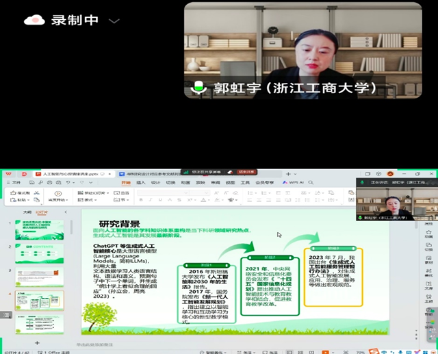10月17日,四虎 教学沙龙第19期暨四虎 教学发展论坛188期如期举行,浙江工商大学郭虹宇副教授以“接纳还是抗拒:中国外语教师对人工智能情感认知的质性研究”为题作专题报告。四虎 及其他四虎 30余位师生聆听了在线报告。