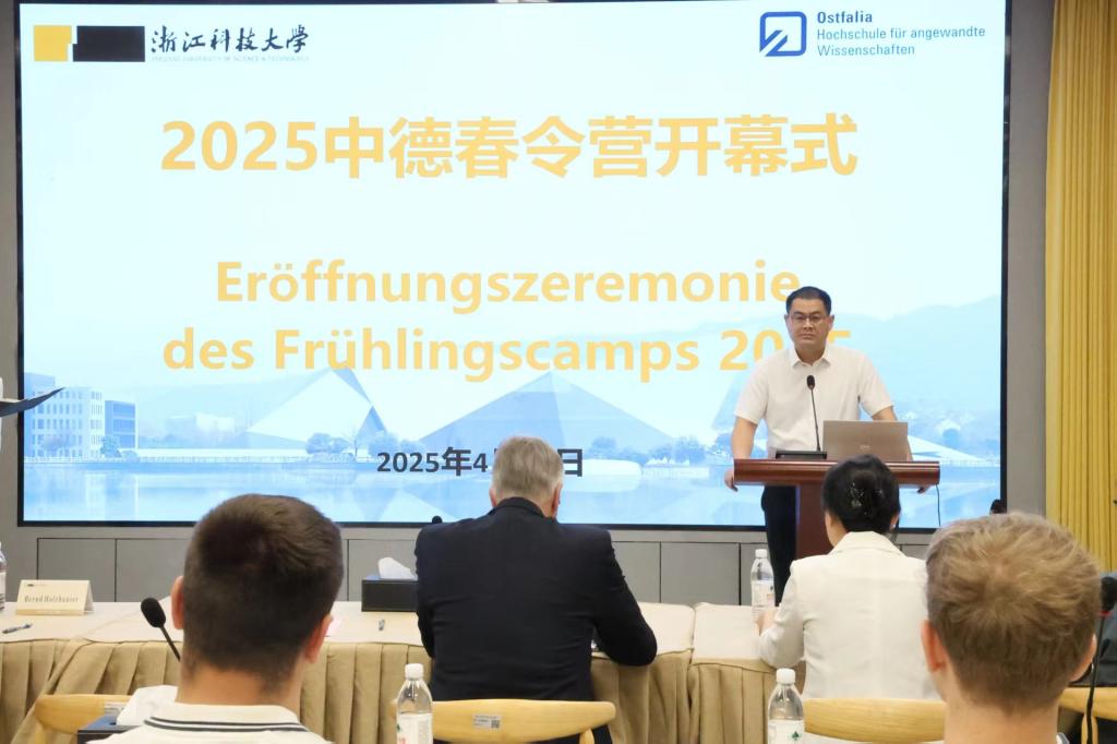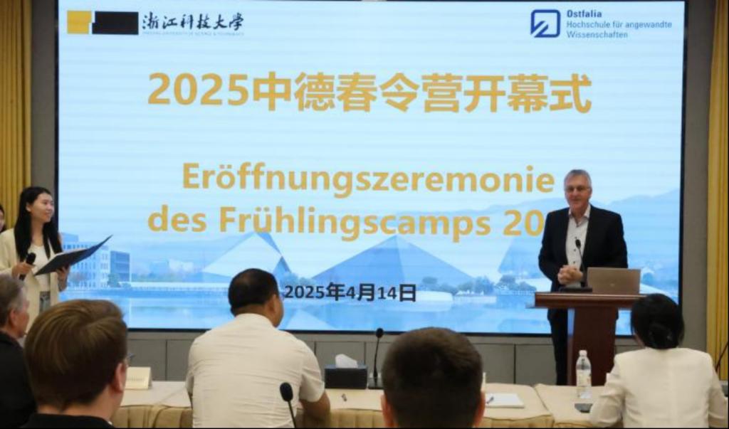 朱杰在致辞中表示,四虎 始终秉持开放办学理念,高度重视国际交流与合作。此次春令营不仅是学术对话的平台,更是中德文化互鉴的桥梁,将进一步推动中德高校在人才培养、学术研究等领域的深度合作。斯卡姆教授在致辞回顾了两校合作历程和取得的丰硕成果。目前,已有百余名浙科大学子赴奥斯特法利亚应用科学大学交流学习,同时,德国学生也通过交流项目走进浙科大,真正实现了教育合作的双向奔赴。