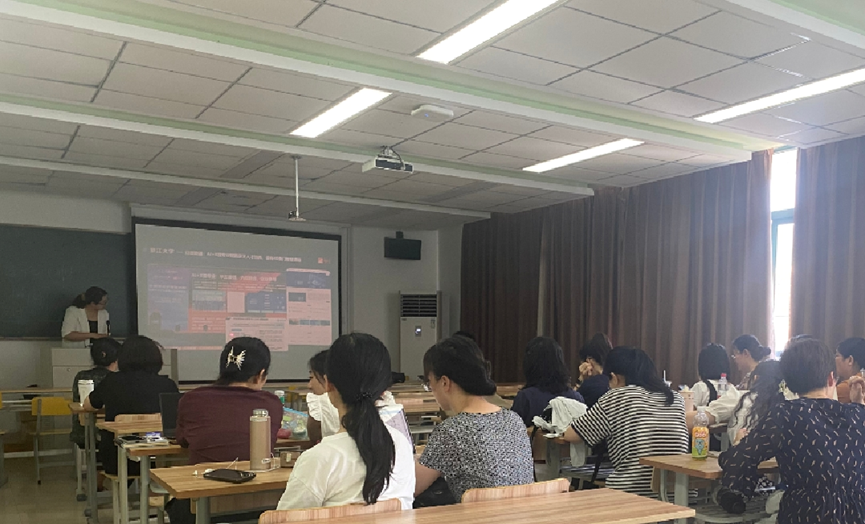 在报告现场,张老师和教师们进行了热烈的互动,特别是对人工智能赋能智慧课程的应用前景进行了深入交流。报告开拓了四虎 教师的教学研究视野,鼓励了教师在教学形式和人工智能应用领域进行思考和创新。