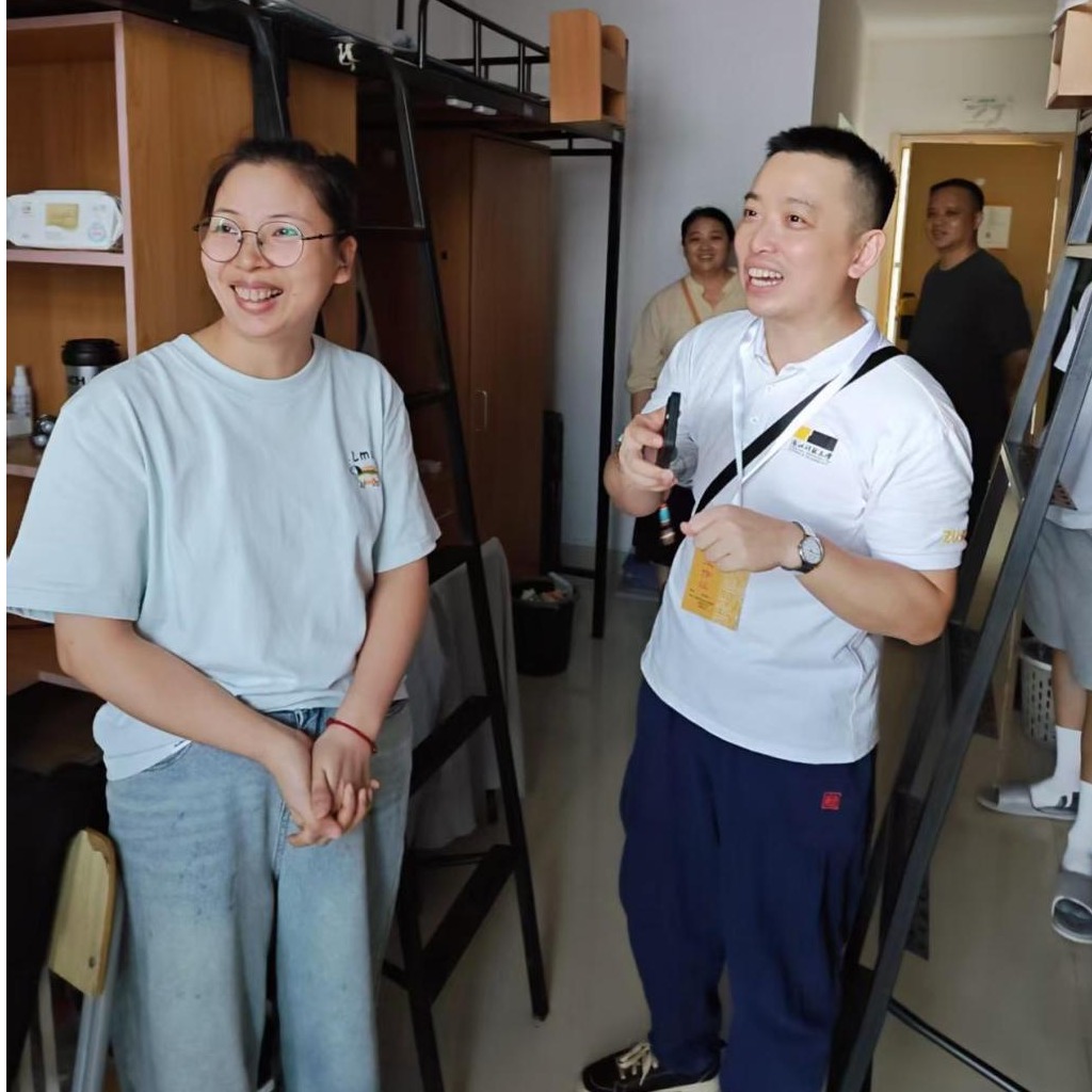 下午,四虎 副院长黄扬、副书记李成炜及班主任一行走访了新生宿舍,与新生及家长亲切交流。老师们细致了解同学们的报到情况,再次向大家表示欢迎,并开展了校园安全教育。他们鼓励新生尽快适应新环境,早日树立奋斗目标,在认真学习之余注意劳逸结合,度过充实而美好的大学时光。