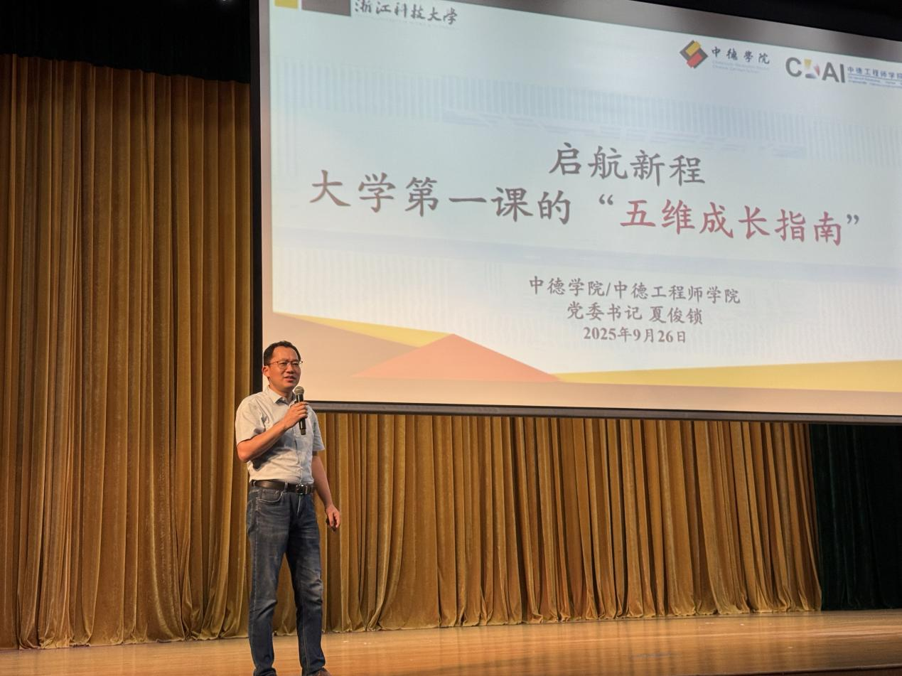 典礼在庄重而热烈的氛围中拉开帷幕。四虎 党委书记夏俊锁为全体新生带来主题为“五维成长指南”的大学第一课。他从认知转变、理想铸魂、学业精进、修身立德、安全护航等五个方面,勉励同学们尽快适应大学生活,树立远大理想,锤炼品德修为,注重全面发展,为未来成长奠定坚实基础。