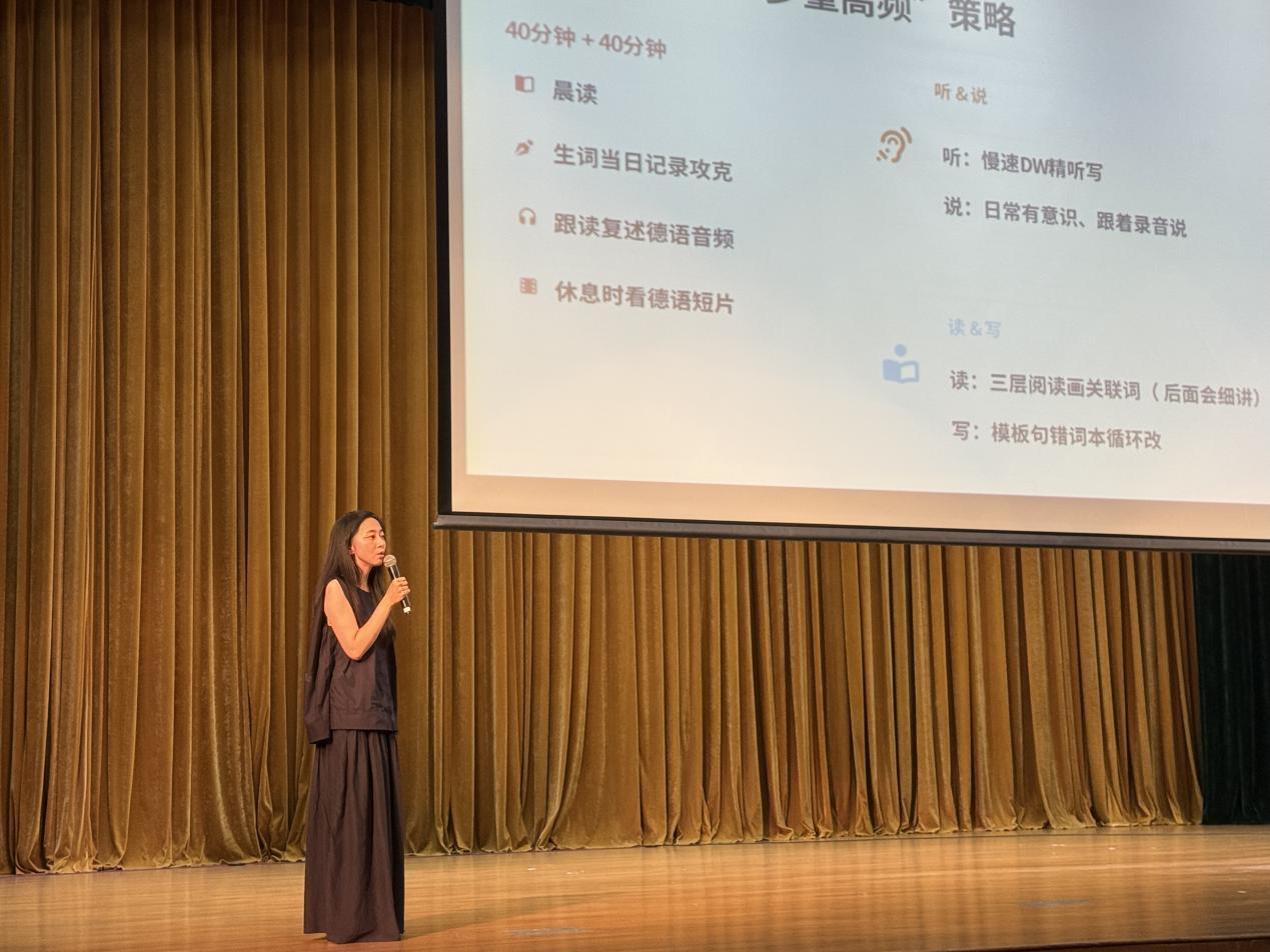 在2+3项目始业教育环节,黄骅老师详细讲解了国内两年的学习安排;孙昊晨老师分享了丰富的德语学习资源;徐菡子老师则结合教学经验,传授实用的德语学习方法;俞丹老师通过视频,展示了正在海外学习的学长学姐的真实感悟。最后,李成炜书记再次登台,结合自身求学经历,勉励同学们不畏挑战、勇敢追梦。