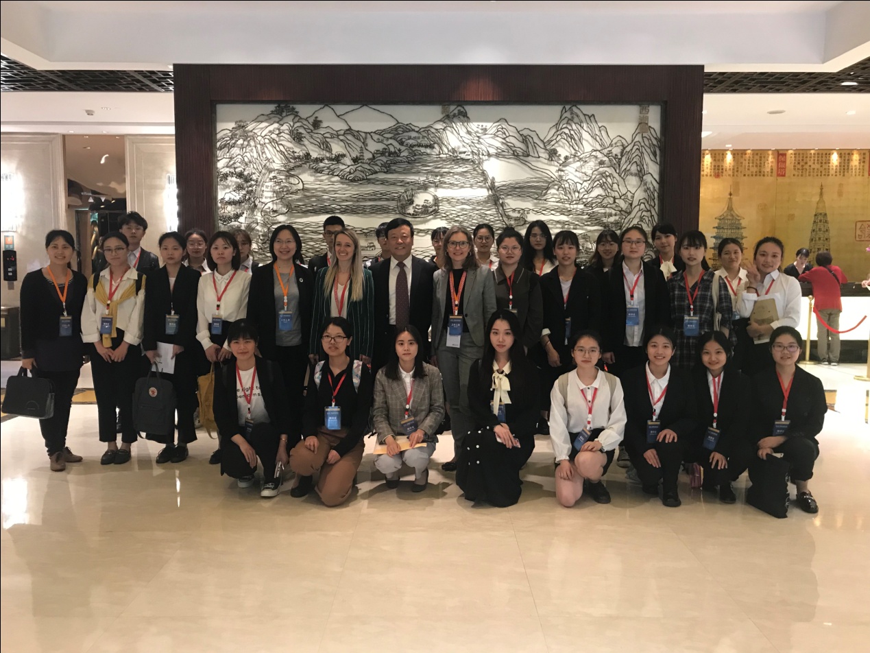 的口译志愿者在英语系方小卿老师带领下参加了浙江省贸促会主办的“浙江省—下奥州商务论坛”,为奥地利政府代表团和40余家奥地利企业家对接浙江企事业单位担任口译,圆满完成任务。