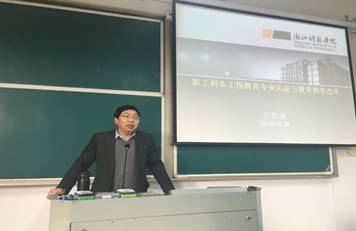 罗教授从我国工程教育现状、我国工程教育改革工程,及新工科的必要性和历程谈起,深入解读了新工科的“新理念、新特征、新知识、新模式、新机会、新人才”的六大特点和建设内涵。接着,罗教授结合工程教育专业认证标准和四虎 专业认证评估工作,阐释了“以学生为中心”、“以产出为导向”、“质量持续改进”的工程教育专业认证理念。他指出,工程教育专业认证的理念对四虎 教学工作影响深远,尤其推动了人才培养质量观的转变,既是一种高等教育办学规范,又是一种以评促建、促进专业建设改革的制度。罗教授认为,在新工科建设中,要深刻理解新工科建设的基本内涵,调整优化专业结构,落实好人才培养目标,推进跨界复合的工程人才培养。最后,罗朝盛教授呼吁抓住国家推动新工科的建设给四虎 带来的良好发展机遇,深刻理会和认真研讨相关政策,积极主动参与争取相应建设平台,以社会需求为导向,推进四虎 专业结构优化调整,切实提高四虎 应用型人才培养质量。