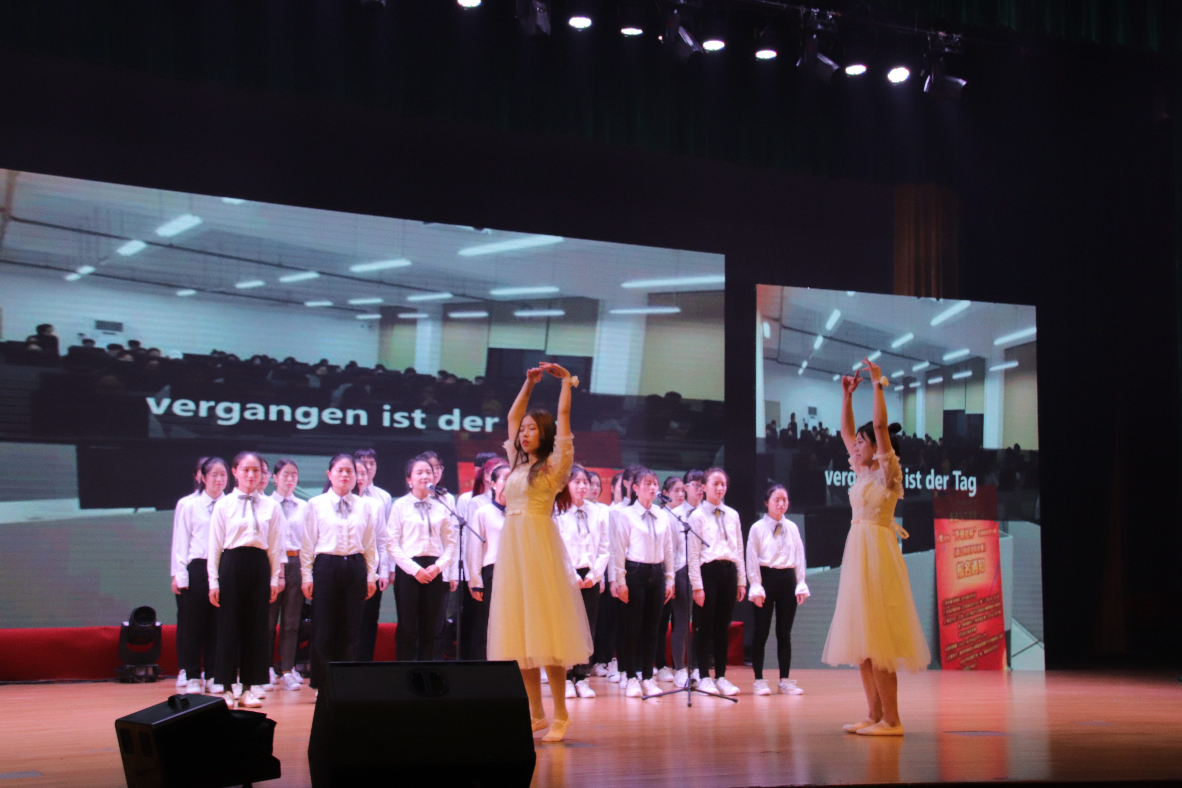 学子专业特色,唯美浪漫,英语183班新年班会Warm your heart 送来寒冷中的温暖,同学间情谊浓浓。 音乐剧 Elizabeth 展现深厚语言功底,现场为表演者点赞。外籍教师Silvia的舞蹈Zumba邀请学生们一起上台,完美的互动将气氛推进。英语173和德语171的双语合唱Auld Lang Syne 为我们的晚会圆满压轴。