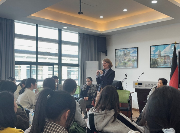 会后,歌德四虎 代表团与四虎 大三学子进行了座谈,就德语学习和德国留学等方面的问题进行了深入的交流研讨。同学们积极提问,代表团们为同学们慷慨解惑,提出了中肯的建议和殷切的期望。座谈会在意犹未尽的交谈中结束,同学们纷纷表示,通过此次交流活动,不仅了解到了更佳的德语学习方法,也为自己的留学计划打下了坚实的基础。