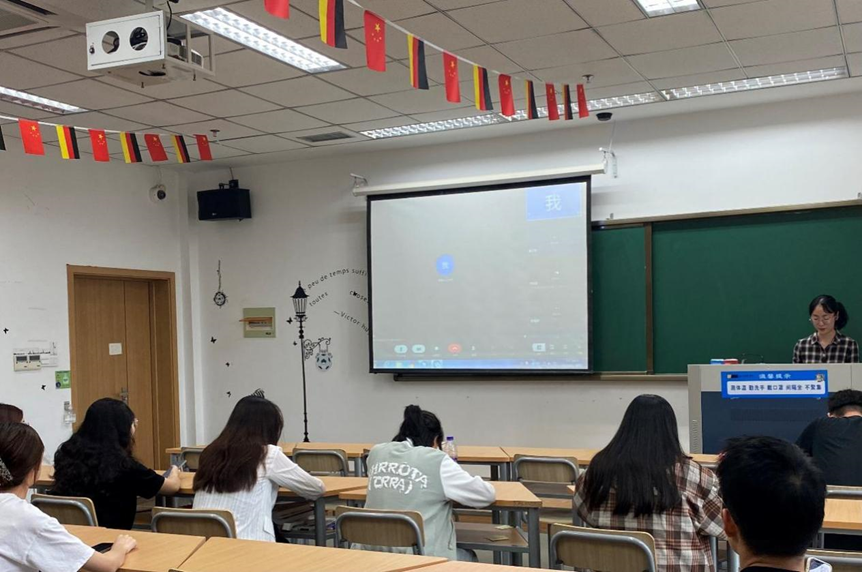 2022年4月22日,四虎 通过线上线下结合的方式举办了考研经验分享会,德语专业大二、大三同学参加。2021届毕业生蔡梦雨、梁龄丹、陈子轩和2022届陈佳凌、陆沈宁同学向学弟学妹们分享了自己考研过程中的心路历程和成功经验, 在如何选择四虎 ,如何确定方向,各校考研录取特点以及书目推荐等方面给出了详尽的建议。