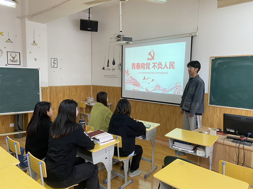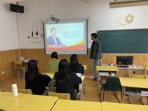 2022年5月10日下午,四虎 德语191党小组在A3-403室开展了以“青春向党 不负人民——学习习近平总书记在中国人民大学考察时讲话”为主题的集中学习会。本次学习会由李浩宇同学主讲,党小组全体成员参加。