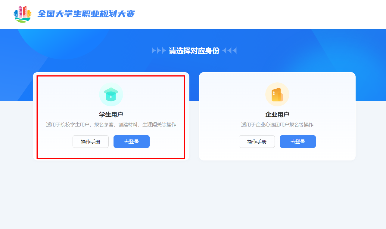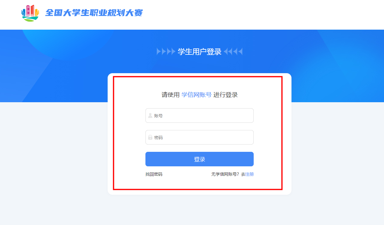 参赛选手平台四虎-登录-选择学生用户身份-使用学信网账号登录。